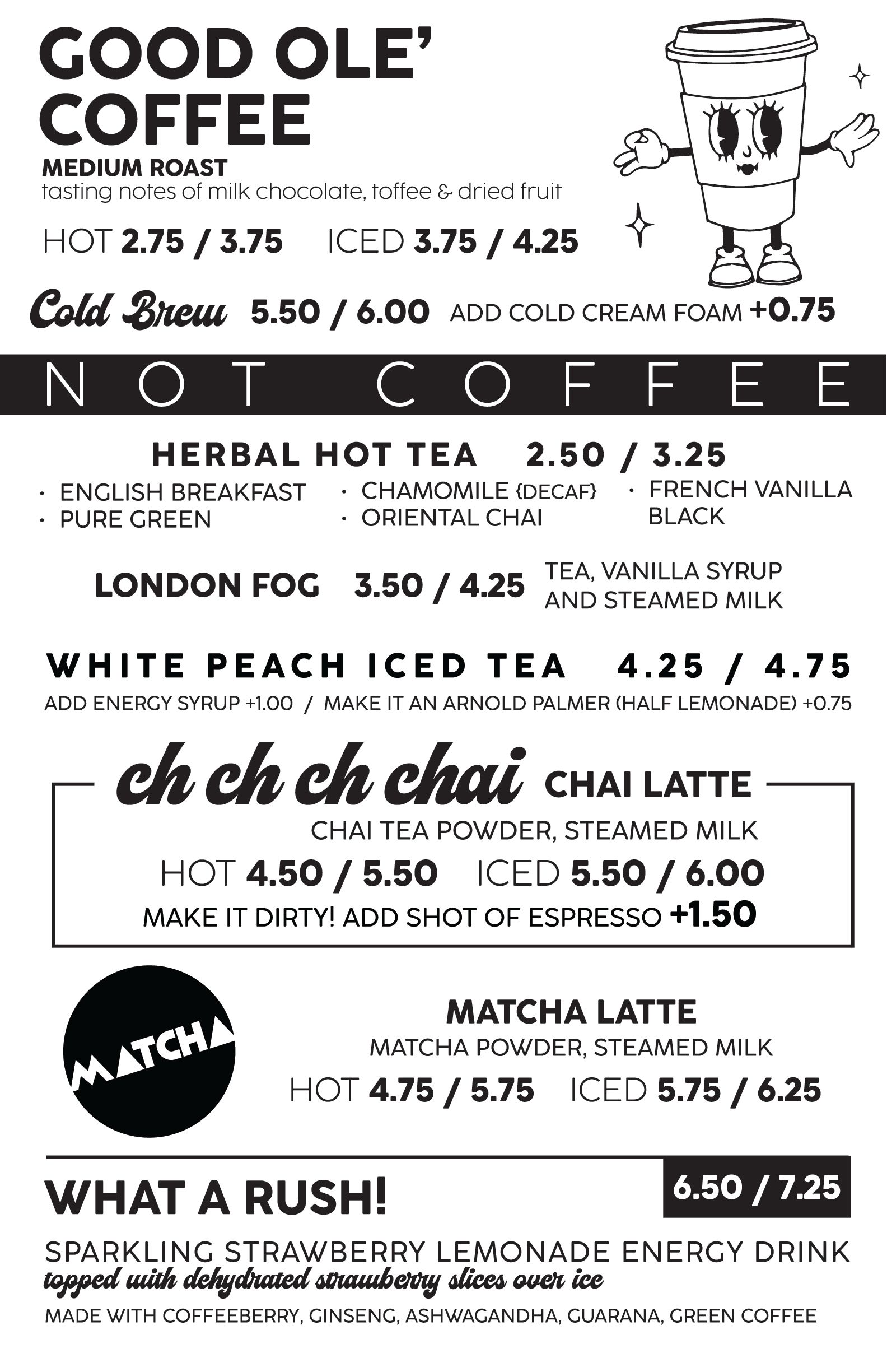 In a rush? Place an online order and your drink(s) will be ready and waiting for you inside.